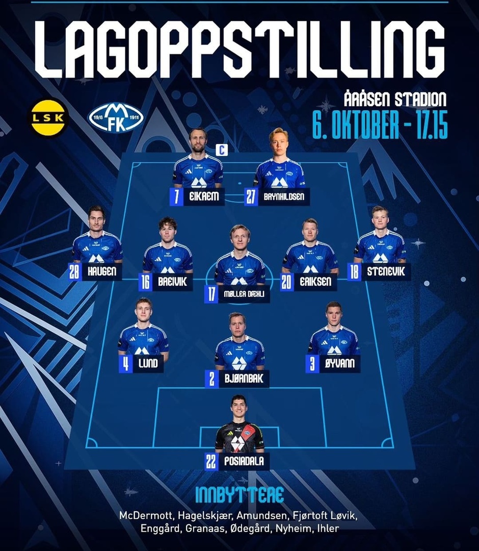 Стартовый состав "Мольде" на гостевой матч 1/4 финала Кубка Норвегии против "Лиллестрёма". Источник: moldefotballklubb | |